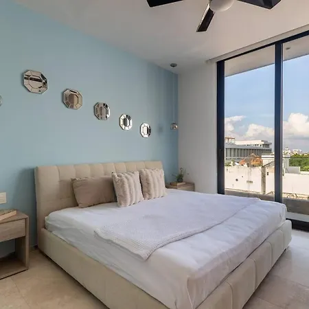 Featuring views of the pool, the beachfront 4-bedroom Luxury Penthouse And Private Rooftop Pool On 5Ta Avenida Playa del Carmen apartment is located just moments from the Quinta Alegria Shopping Mall. Staying in the apartment, nestled merely 6 minutes' walk from the Quinta Avenida, guests can relax on a terrace.
